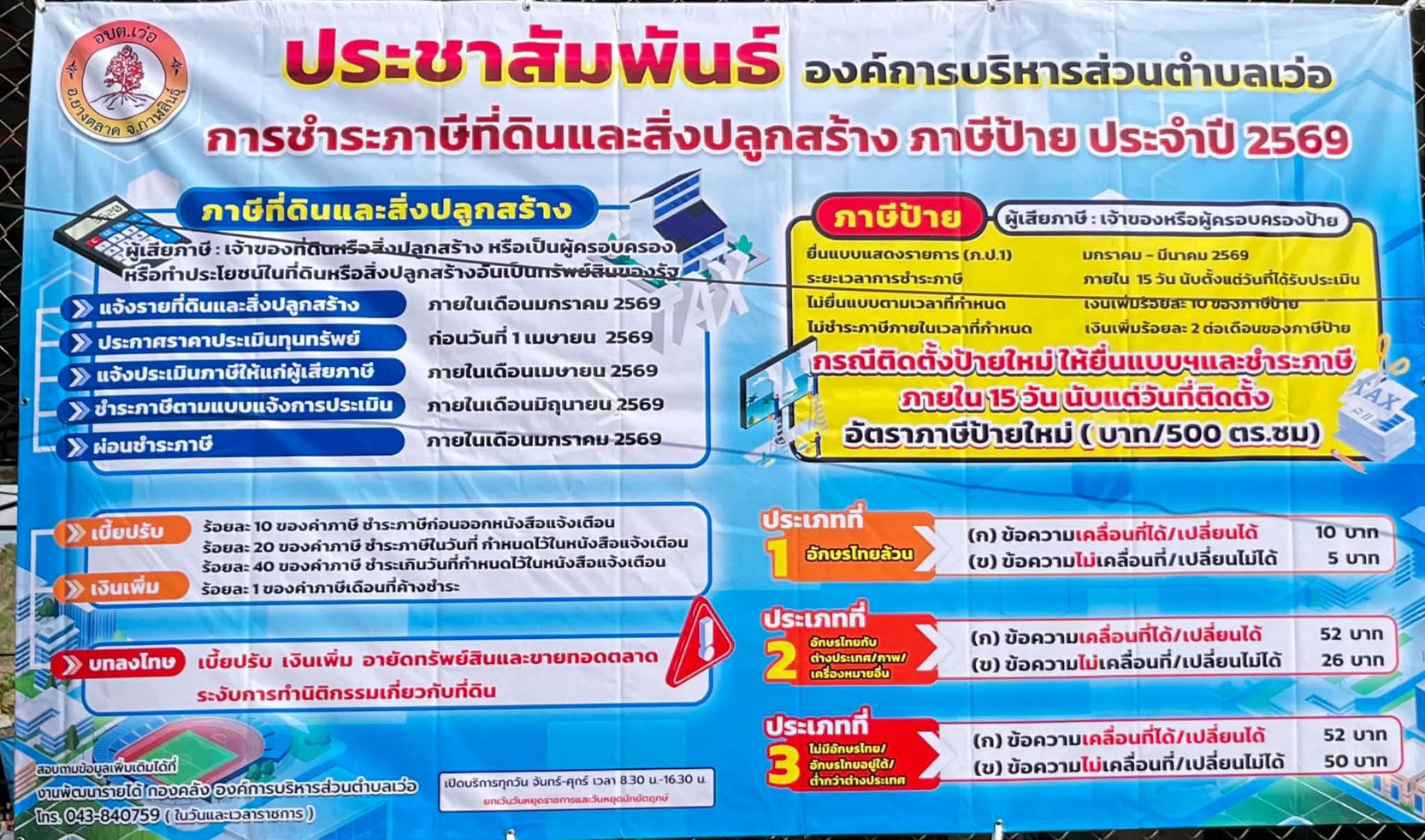 ประชาสัมพันธ์ องค์การบริหารส่วนตำบลเว่อ การชำระภาษีที่ดินและสิ่งปลูกสร้าง ภาษีป้ายประจำปี 2569 |